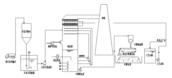以造紙白泥(CaCO3)、電石渣(Ca(OH)2)等作為脫硫劑,實現以廢治廢。該工藝廣泛應用于造紙廠自備熱電廠、PVC行業自備電廠等。經過對堿渣特性的充分考慮,實現脫硫產物(石膏)品質與石灰石石膏法相同。